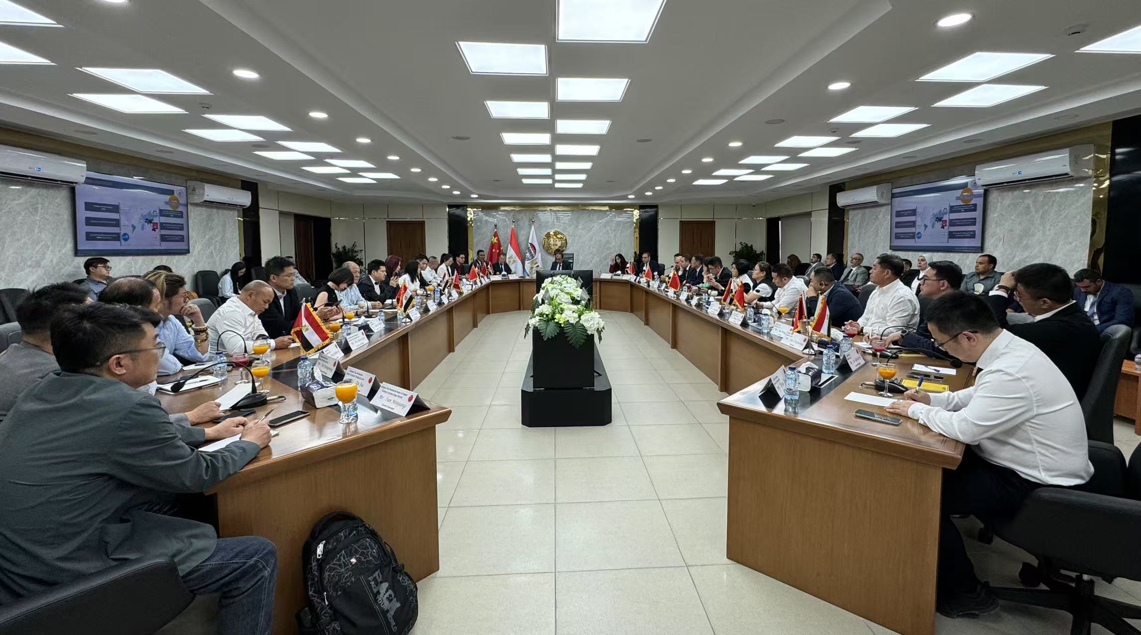 代表团一行与中国驻埃及经商处赵刘庆公使进行了座谈。赵公使对代表团的来访表示热烈欢迎,他在发言中提到,埃及是中国在非洲第一个建交的国家,明年是两国建交70周年,意义非凡。中埃双边关系良好,两国元首密切交往为投资提供了稳定坚实的基础,目前是双边关系历史最好时期。中国对埃及总出口额168亿美元,双边贸易额达199亿美元。近年来,在中美关税战背景下,企业寻求多元化的国际市场,而埃及的地理位置优势、与欧美及中东和非洲国家的诸多自由贸易协定、丰富的劳动力及低成本成为吸引外资的亮点,中国的纺织服装及家电行业近一两年来在埃及投资项目明显增多,经商处也密集收到多家国内企业的来函来电及拜访。由于目前埃及北部地区已接纳不少纺织企业的投资,所以埃及政府希望纺织业投资往南部地区发展,女工劳动力更充沛,同时也出台了多项政策支持外资进入,展现了合作诚意。刘公使提醒国内企业,在实际投资中,企业也将面临诸多挑战,如政治、物流、法律及文化差异等,需要通过加强合作、适应当地环境等方式解决,确保在复杂多变的国际环境中寻找合作机会和投资安全。